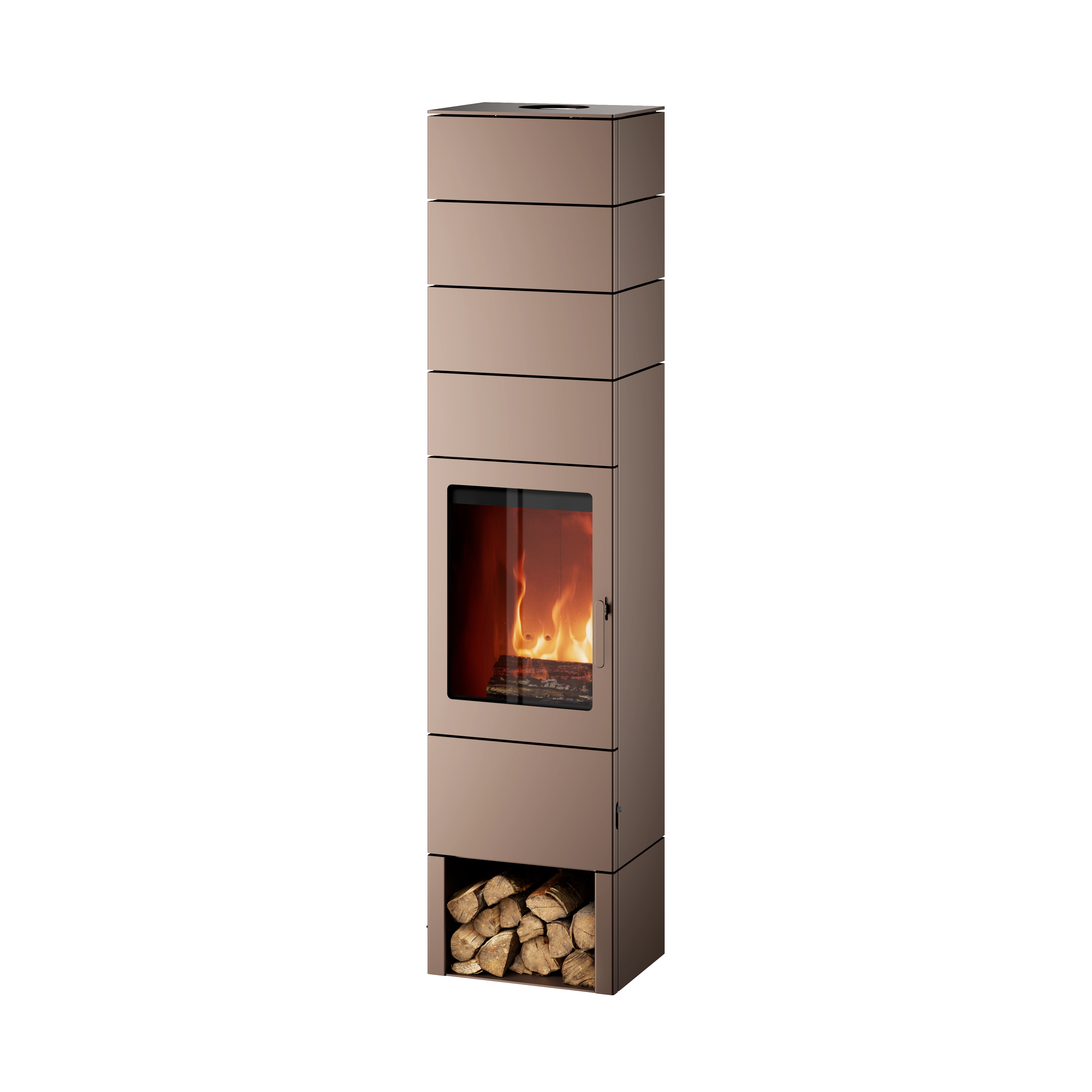 Blaze Element 07 Pearl Brown PA s podstavcem a akumulační nástavbou vyloženou žárobetonovými prstenci. Nabízíme také montáž těchto kamen, kde je sazba DPH 12%!